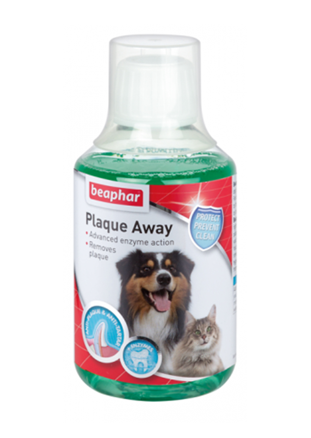 Το Plaque Away είναι ένα υγρό διάλυμα το οποίο προστίθεται στο πόσιμο νερό του σκύλου ή της γάτας για την καθημερινή εξουδετέρωση της κακοσμίας του στόματος.
