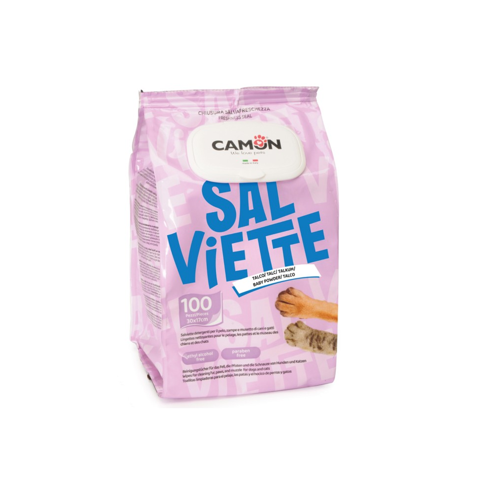 Μαντηλάκια καθαρισμού με Talc. Εξαιρετικά πρακτικό για τα κατοικίδια σας, για να καθαρίζετε τα μαλλιά,τη μύτη,τα αυτιά και τα πόδια του ζώου σας.