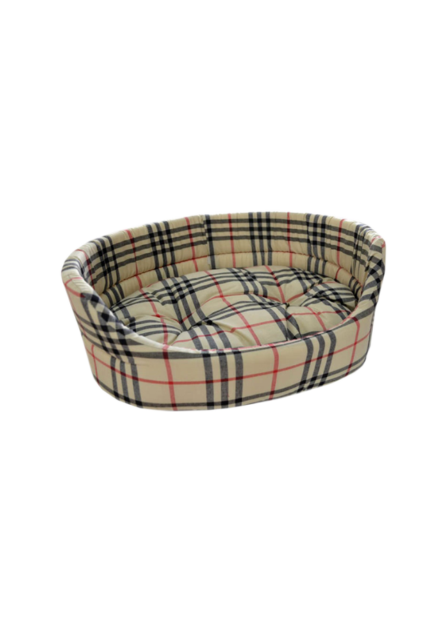 Φωλιά εμπριμέ καρό μπεζ, για την καλύτερη δυνατή άνεση των κατοικίδιων σας.