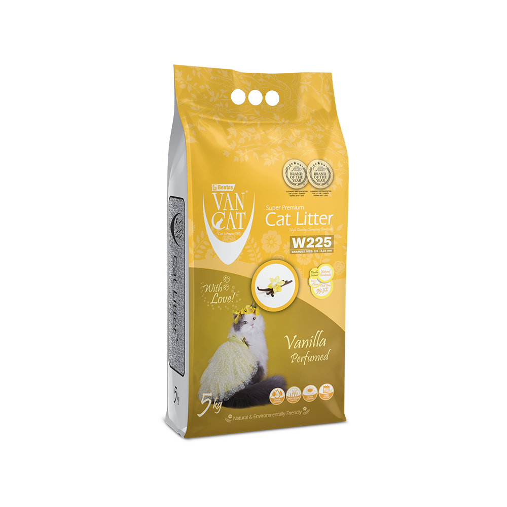 Άμμος υγιεινής για γάτες με μπεντονίτη και άρωμα βρεφικής πούδρας. Με χοντρό κόκκο για να μην μπλέκεται στο τρίχωμα των γάτων 0,6mm-4mm. Με άρωμα Masalia Shoop. Πολύ υψηλός έλεγχος οσμών. Συμπαγής κόκκοι (Compact) 300-330%, ικανότητα απορρόφησης 99,5%, χωρίς σκόνη, 100% φυσικός μπεντονίτης. Η Van Cat είναι ένα 100% φυσικό προϊόν από αρίστης ποιότητας λευκό μπεντονίτη. Είναι απολύτως ασφαλής για τη γάτα σας αλλά και για το περιβάλλον.