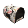 Τσάντα μεταφοράς κατάλληλη για απλή μεταφορά , το αυτοκίνητο αλλά και το αεροπλάνο , σύμφωνα με τις νέες προδιαγραφές της ΙΑΤΑ . Έχει παράθυρα σε τέσσερις πλευρές και έξτρα τρύπες , με εξαερισμό 16% της συνολικής επιφάνειας , ελαστική παραμόρφωση (συμπίεση) ύψους 12% (maximum 3cm).Είναι κατασκευασμένη από ύφασμα αδιάβροχο και ανθεκτικό στο σκισίματα και διαθέτει εσωτερίκο λουρί συγκράτησης καθώς και αφαιρούμενο ιμάντα ώμου . Είναι ελληνικής κατασκευής , από αδιάβροχο υλικό και έχει σκληρά τοιχώματα. Συνιστάται να την πλένετε στο χέρι ενώ επειδή το χρώμα του υφάσματος είναι μη τοξικό , είναι προτιμότερο να την στεγνώνετε σε σκιερό μέρος.