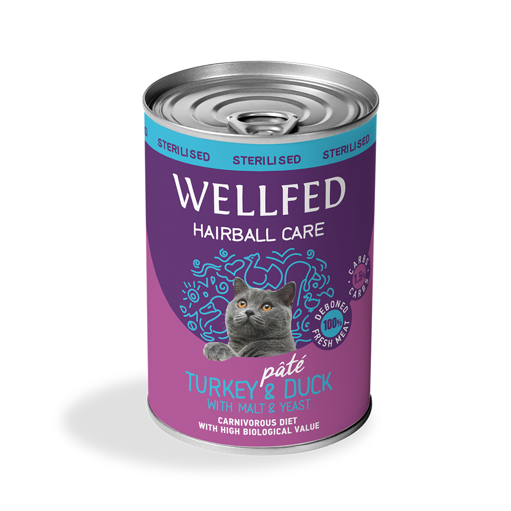 ΚΟΝΣΕΡΒΑ ΓΑΤΑΣ WELLFED 1440 STERILISED-HAIRBALL PATE TURKEY-DUCK 400g