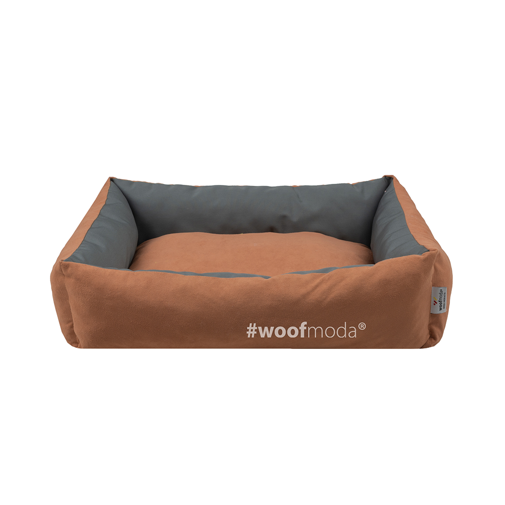 Πουφ κρεβάτι σκύλου, από την Woofmoda, με ανυψωμένες πλευρές για την στήριξη του κατοικιδίου σας σε οποιαδήποτε στάση προτιμάει να ξαπλώνει. Το σχήμα του είναι ιδανικό στην περίπτωση που ο σκύλος σας απλώνεται και κοιμάται στο πλάι ή ανάσκελα.
