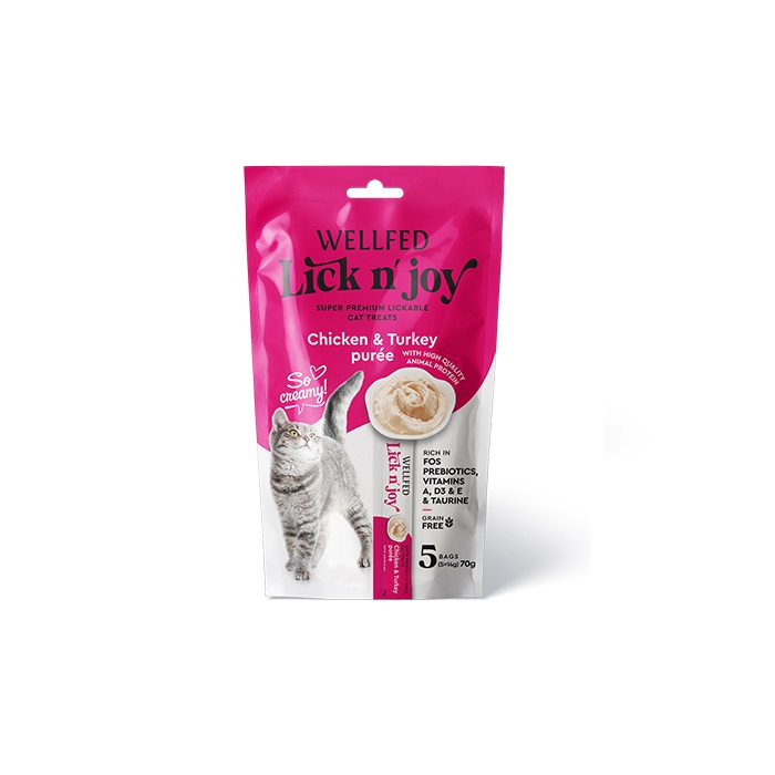 ΛΙΧΟΥΔΙΑ ΓΑΤΑΣ WELLFED LICK N’ JOY CHICKEN & TURKEY PUREE (5x14g) 70g