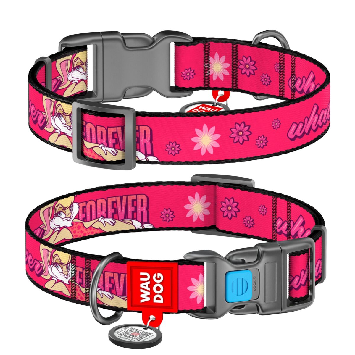 Περιλαίμιο Σκύλου WauDog Looney 6 Plastic Fastex 15mm x 23-35cm με SmartID. Το περιλαίμιο διαθέτει σχέδιο Looney Tunes, πλαστικό κούμπωμα ασφαλείας και ρυθμιζόμενο μήκος.