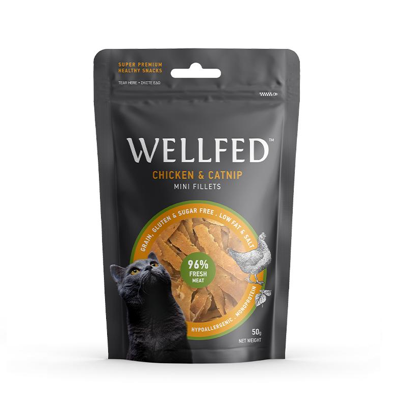 ΛΙΧΟΥΔΙΑ ΓΑΤΑΣ WELLFED 2104-W MINI FILLETS CHICKEN-CAT NIP 50g